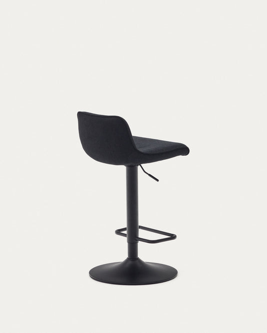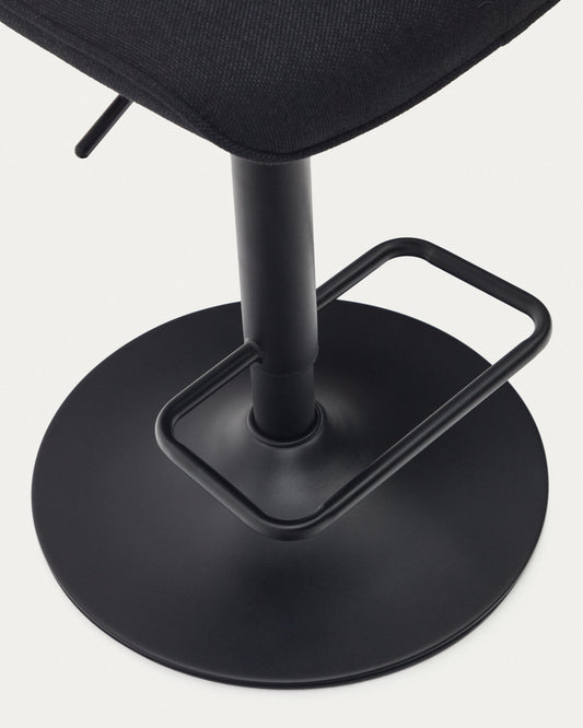 Zenda stool in black chenille and matt black steel 81-102 cm FSC 100%