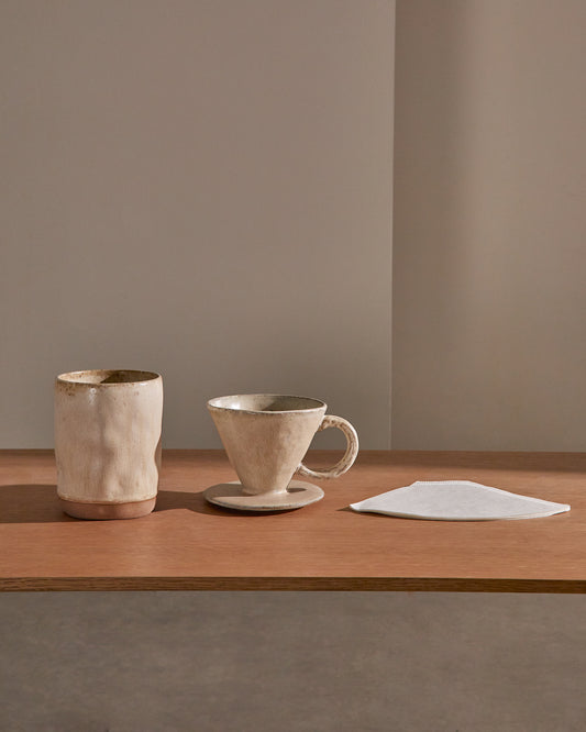 Zunel beige ceramic coffee cup with dripper set
