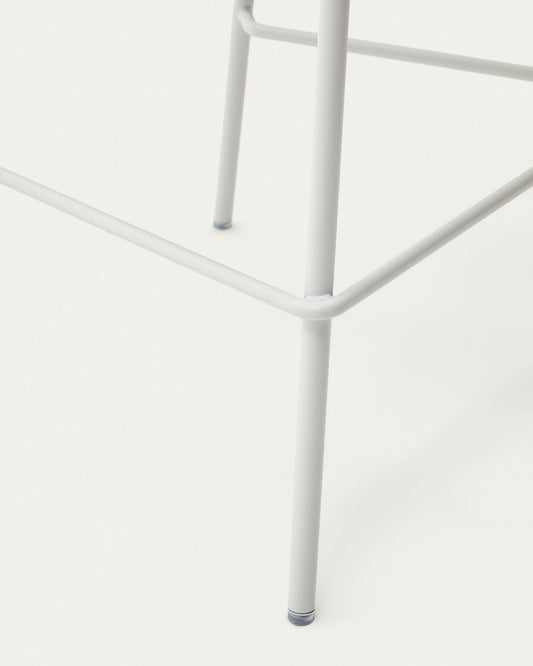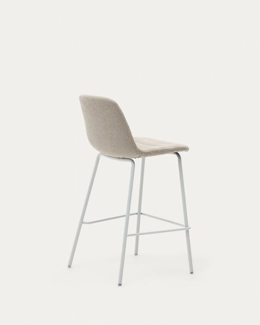 Zunilda stool in beige chenille and steel with matt white finish height 65 cm FSC 100%